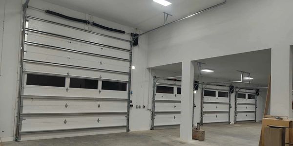 These professionally installed garage doors create a sleek, modern look while enhancing both functionality and curb appeal. The clean lines, uniform lighting, and high-quality finishes reflect expert craftsmanship and attention to detail. Whether for residential or commercial use, these doors provide lasting performance, security, and the satisfaction of a polished, contemporary design.